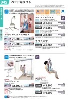 ※左のマークが表示してある商品は、介護保険を利用すると、1割負担でレンタル・購入いただけます。 詳しくは本カタログの8ページをご覧ください。介護レンタル介護購入認知症関連用品トイレ用手すり入浴補助用具手動車いす杖ベッド用リフトポータブルトイレその他入浴用品電動車いすシューズ歩いて移動する車いすで移動するお風呂に入る排泄する排泄する知らせる・見守る部屋で過ごす042ベッド用リフトミクニスリングシートC7-121 ハイバック4点式(フリー)〈KH4-F〉C7-120 6点式ハイバック(S・M)〈KH-SS、KH-SM〉 (税込)販売価格 ¥51,840 介護保険利用時負担額¥5,184D3-015 マイティスリング(S・M)〈MB-SS、MB-SM〉 (税込)販売価格 ¥45,360 介護保険利用時負担額¥4,536D3-006 ローバックメッシュ(S・M)〈KL-SS、KL-SM〉C7-119 シートタイプ(フリー)〈ST-S〉C7-145 ローバック(フリー)〈KLN〉 (税込)販売価格 ¥43,200 介護保険利用時負担額¥4,320※サイズの目安…Sタイプ:身長155cmまで、Mタイプ:身長155cm以上※サイズの目安…S:身長120~140cm、M:身長135~165cm、 L:身長160~185cmC7-120D3-006C7-119C7-121D3-015C7-145工事不要で簡単据え付け。コードレスリモコンなので上げ下げも楽に行えます明電興産アーチパートナーC7-138 〈ACTA201〉 (非課税)介護保険利用時負担額 ¥2,500/月 レンタル料金¥25,000/月販売価格¥670,000サイズ 幅100×長さ258×高さ230cm昇降範囲 上下移動160cm 水平移動210cm重量 40.0kg最大荷重 100kg材質 スチール介護レンタル多関節アームにより幅広い移動が可能なリフトです。ベッドから車いすやポータブルトイレなどへの移乗にかかる介護負担を軽減できます。ミクニマイティエースⅡベッドセットC7-124 (非課税)介護保険利用時負担額 ¥1,800/月 レンタル料金¥18,000/月販売価格¥452,000C7-149 S〈低床対応〉 (非課税)介護保険利用時負担額 ¥1,800/月 レンタル料金¥18,000/月販売価格¥475,000サイズ 幅140×長さ90×高さ212cm重量 46.0kg材質 ステンレス、樹脂最大荷重 90kg介護レンタルライトスリングC7-146 ローバック(S・M・L) (税込)販売価格 ¥45,360 介護保険利用時負担額¥4,536スリングシートは利用される方の身体状況・使用環境などを考慮して選ぶ必要があります。安全・安心してご利用頂く為に、当社スタッフにご相談ください。※スリングシート、キャリー、ベッドは別売です。ウェル・ネット研究所チェアシートC7-151 A-S〈WN-3007-S〉 A-M〈WN-3007-M〉 A-L〈WN-3007-L〉 (税込)販売価格 ¥43,200 介護保険利用時負担額¥4,320C7-151 専用ヘッドサポートM 〈WN-3010-M〉 (税込)販売価格 ¥16,200 介護保険利用時負担額¥1,620介護購入※サイズの目安…A-S:身長130~150cm A-M:身長140~160cm、A-L:身長155~175cmC7-149介護購入